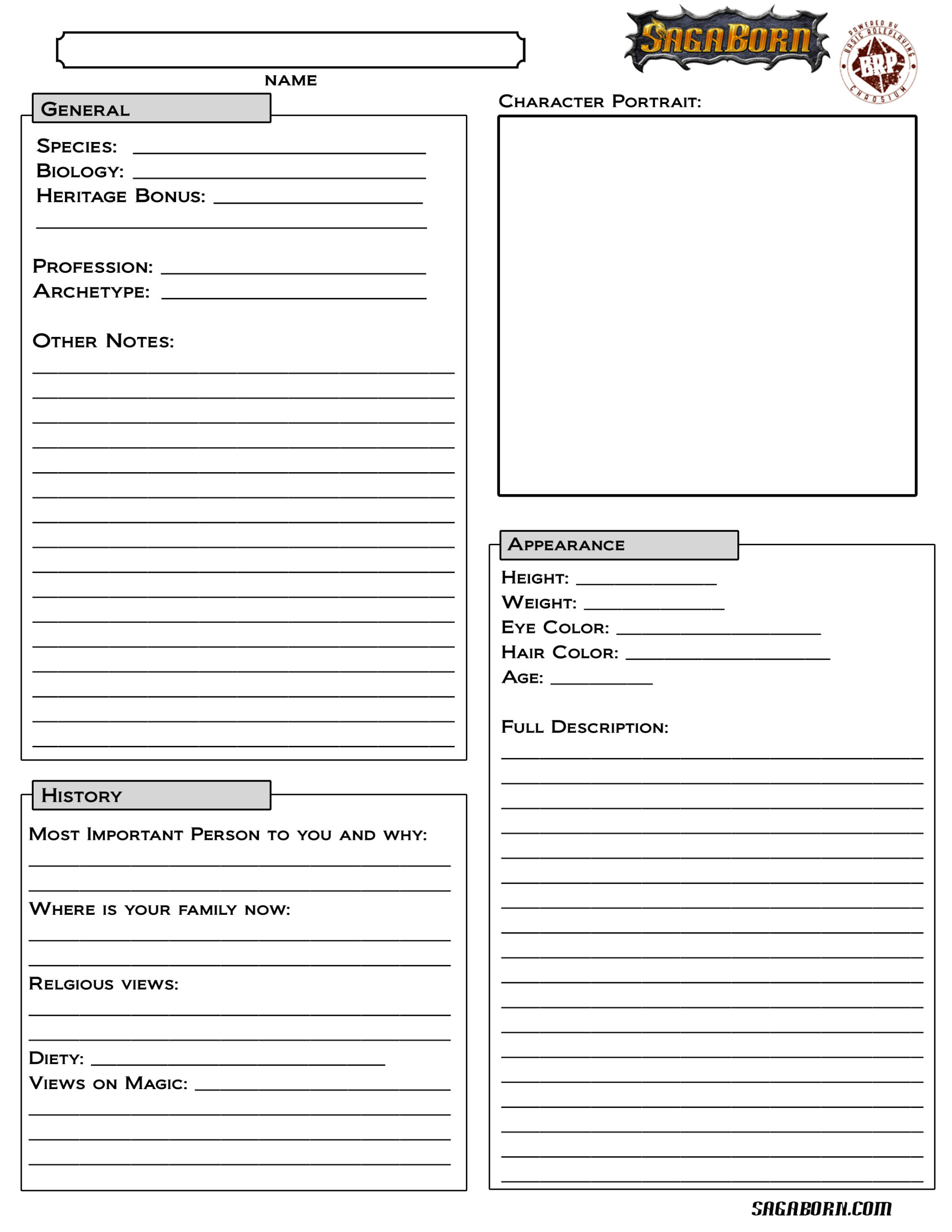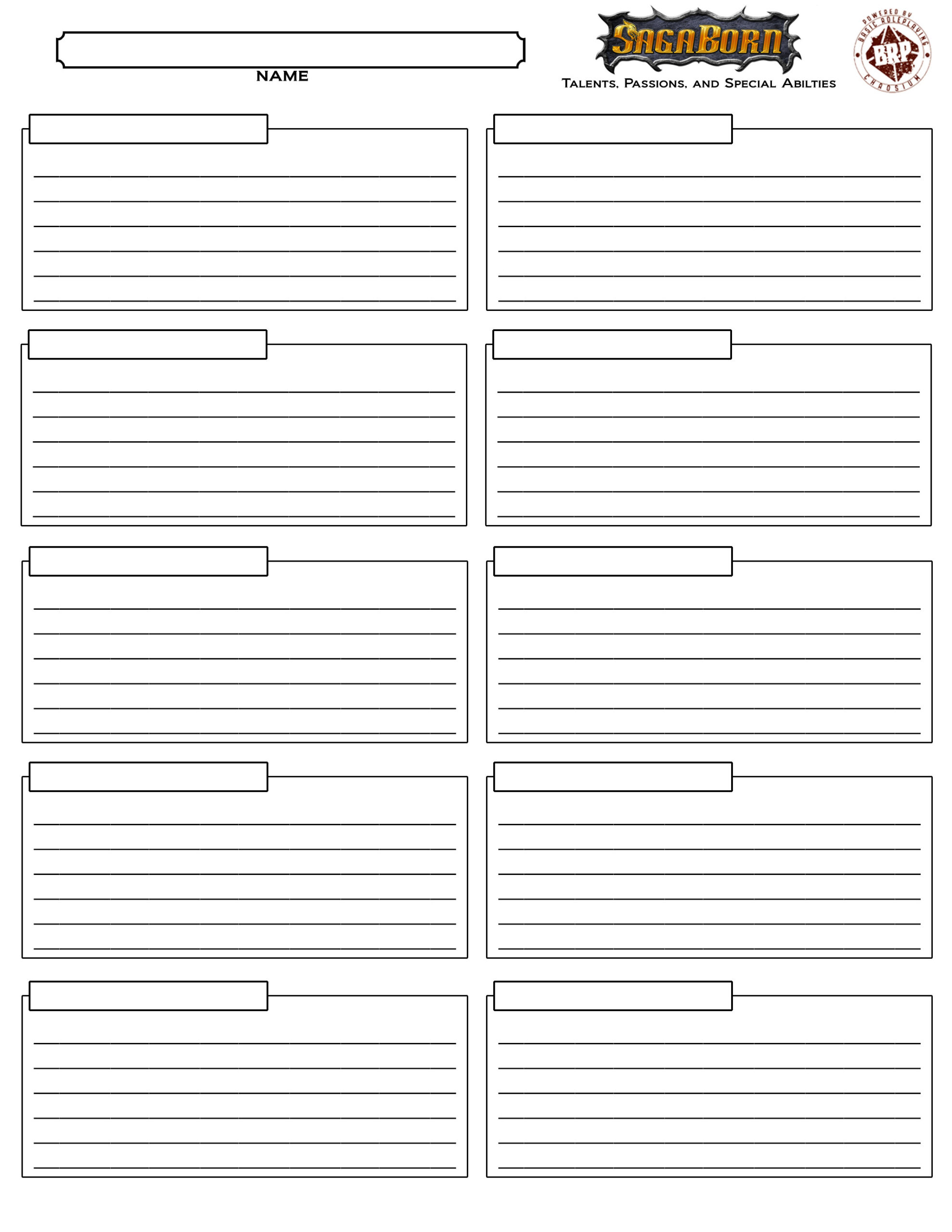Blank Character Sheets :