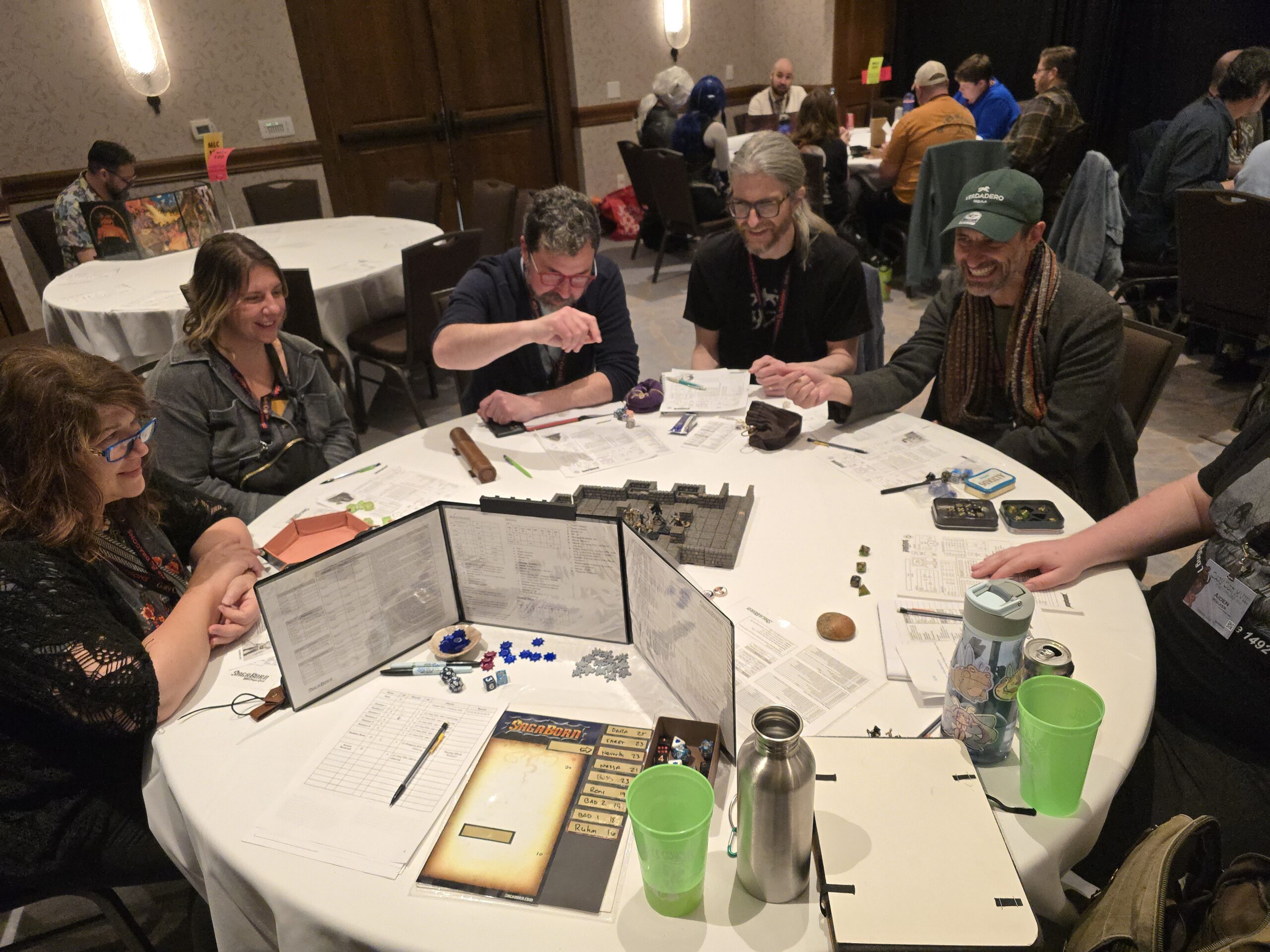 For the Vintage RPGers: I had many great conversations with new friends Woody and Desiree, comparing past adventures and favorite games. Patrick snuck into one of my games and was quite charming as a scoundrel. It was great to put faces to the wonderful people of that community.
