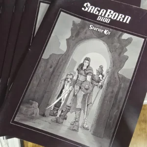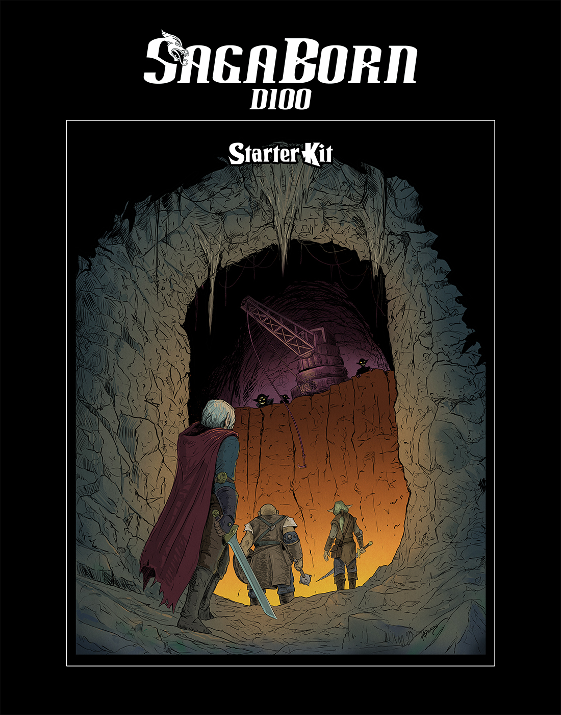 The SagaBorn D100 Starter Kit is a free book to help begin telling adventures in the world of the Dark Return using the streamlined SagaBorn D100 system.
