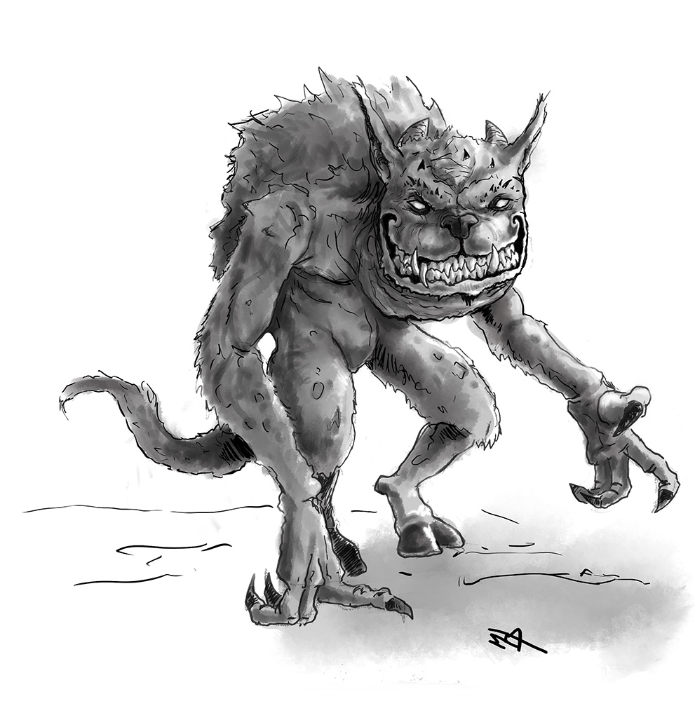 - Attack: Bite 60% 1d6+dm and (2) Claws 60% 55% 1d6+dm