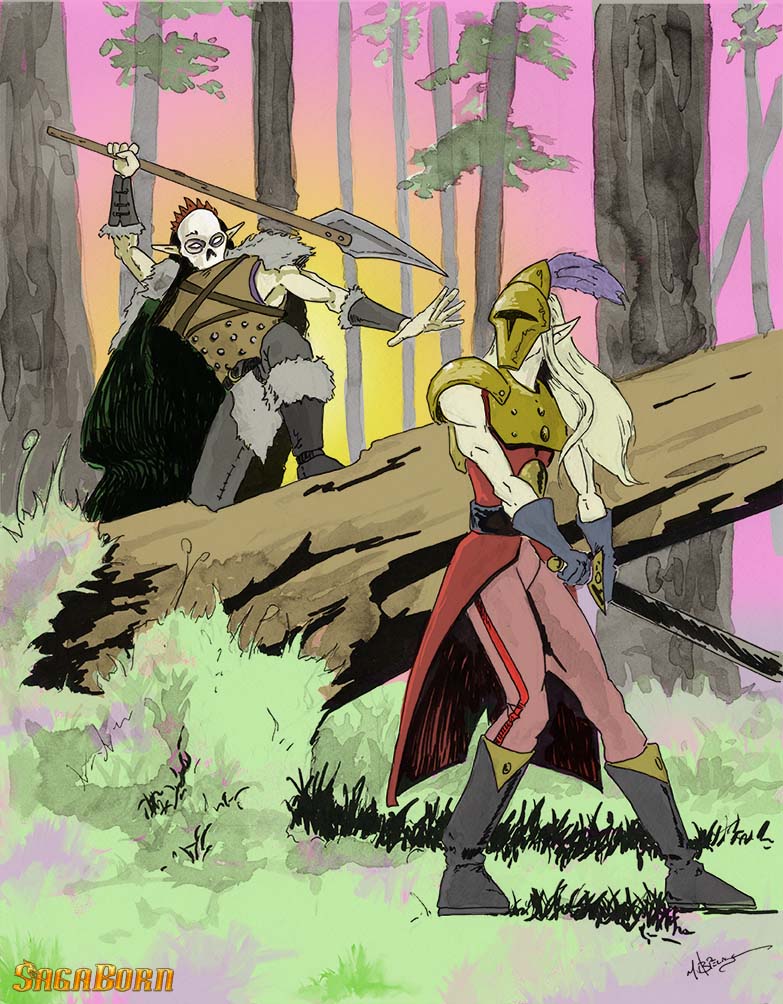 Equipment: (2) Elfwood Broadswords, Elven Shortbow, Mastercraft Elfwood Breastplate, Elfwood Buckler