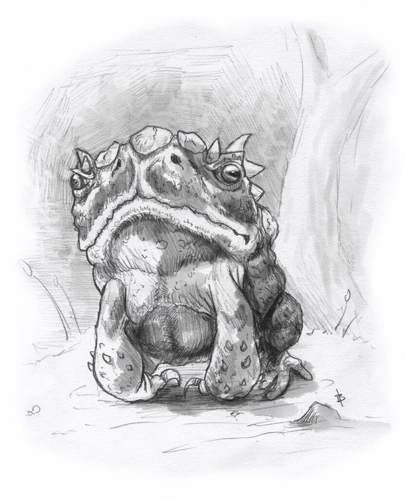 They resemble an angry, giant, mutated toad and they are always hungry. Even with their large size, they are fast, very fast. A long spear or pike is a good starting weapon. If it swallows you, well… better hope you can cut your way out with whatever blade you have on you!