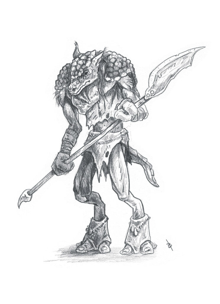 Armor-plated and hunched, an angroll is a fearsome foe—and they never travel alone.